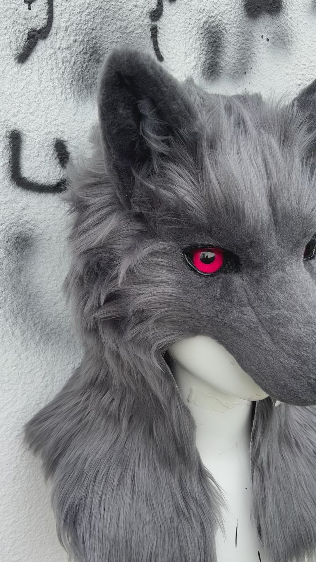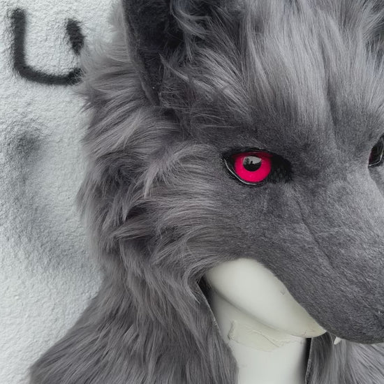 [Stock]handmade gray wolf fursuit hat halloween cosplay costume headpiece half face mask furry accessories