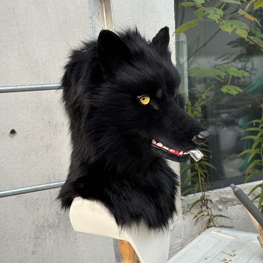 [Stock]Movable Jaw Black Wolf Head Realistic Fursuit Headpiece Cosplay Mask Halloween Costumes